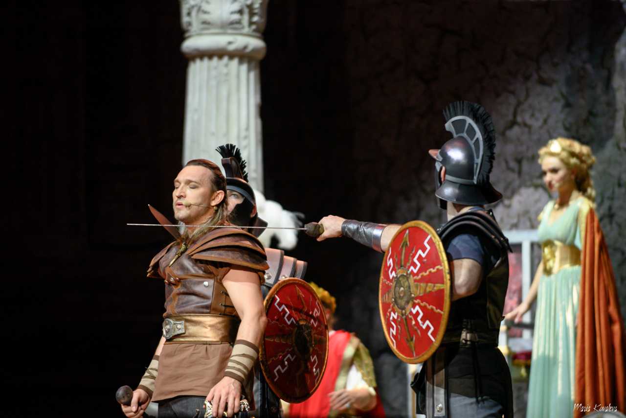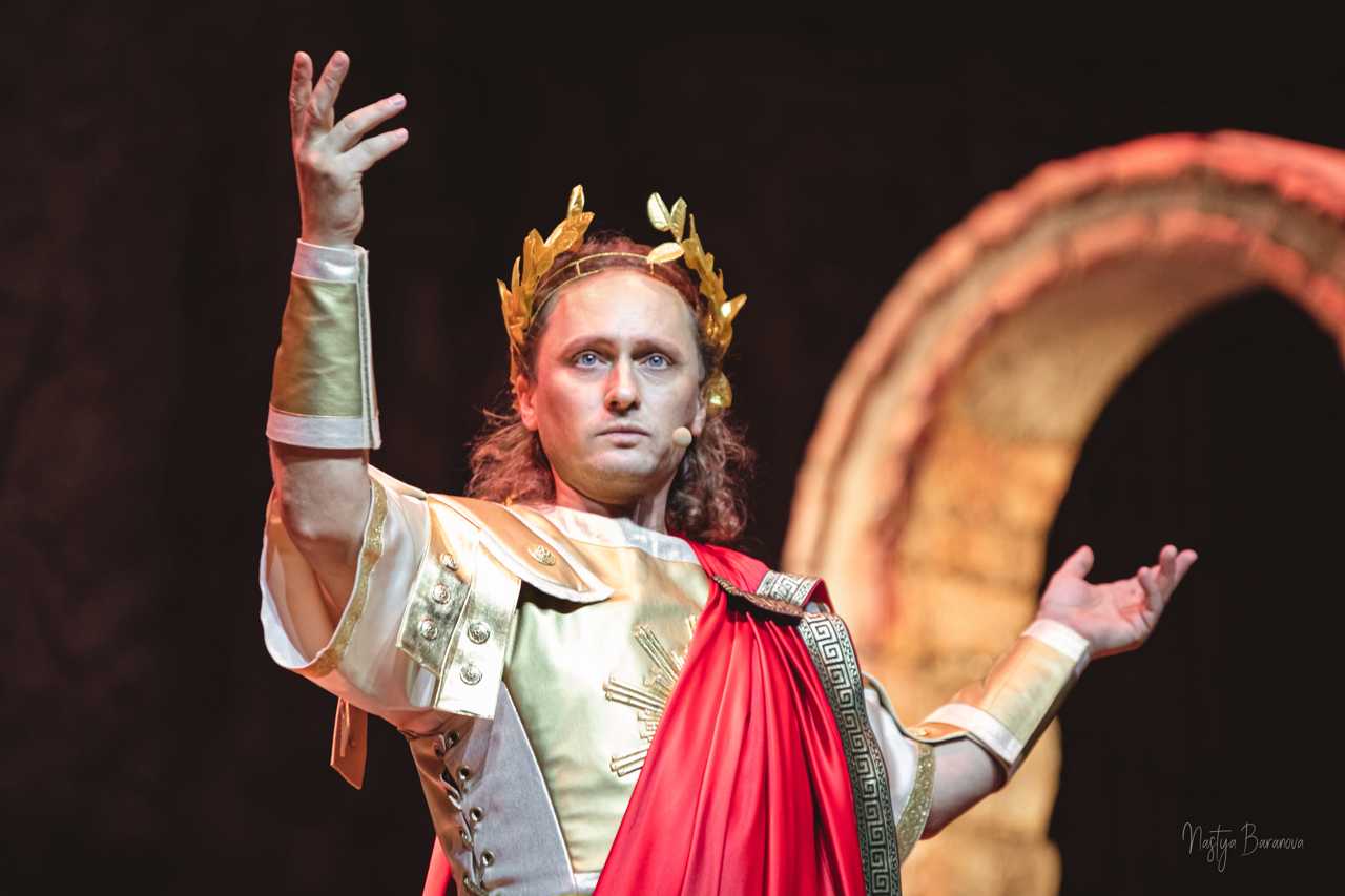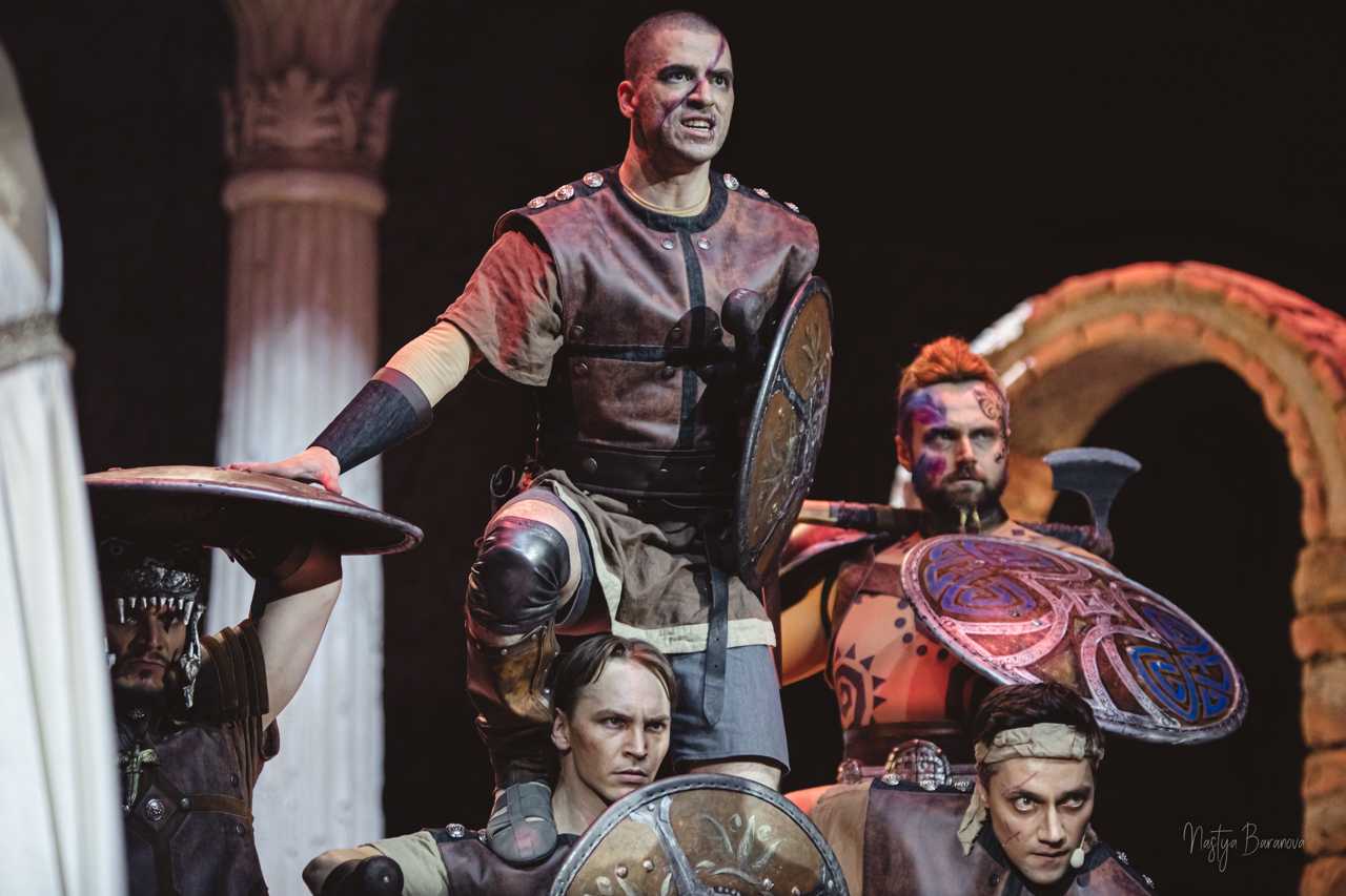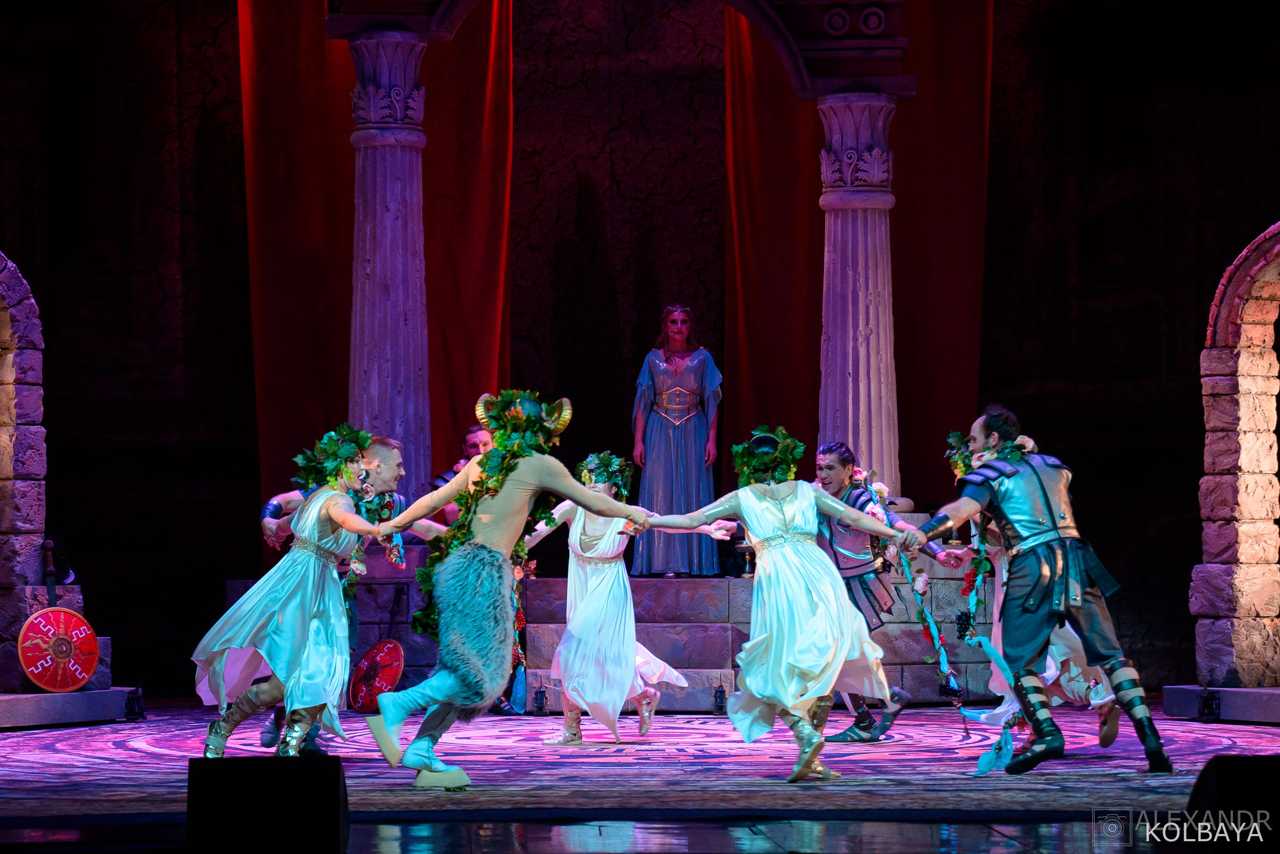 Величественные декорации, роскошные костюмы, словно сошедшие со страниц истории, и завораживающая хореография, полная грации и мощи, воссоздают атмосферу гладиаторских боев, змеиных придворных интриг, безудержных народных гуляний и мистических древних ритуалов, без остатка погружая зрителя в мир Древнего Рима.