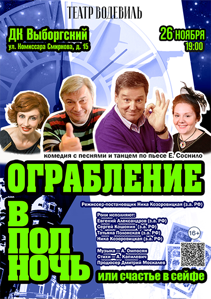 У нас можно заказать онлайн официальные билеты на комедийные и драматургические постановки в Выборгский дворец культуры, ДК им. Ленсовета, дворец искусств Ленобласти и на другие театральные площадки города.