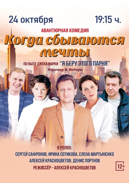Продолжительность: 2 часа 20 минут с антрактом Авантюрная комедия по мотивам популярного американского драматурга Джека Шарки Режиссер - Алексей Красноцветов В ролях: • Гидди – Ирина Сотикова • Брет – Сергей Сафронов / Илья Соколовский • Шарлен – Ирина Мартыненко / Александра Самохина • Декс – Денис Зайцев / Алексей Красноцветов • Джад – Евгений...