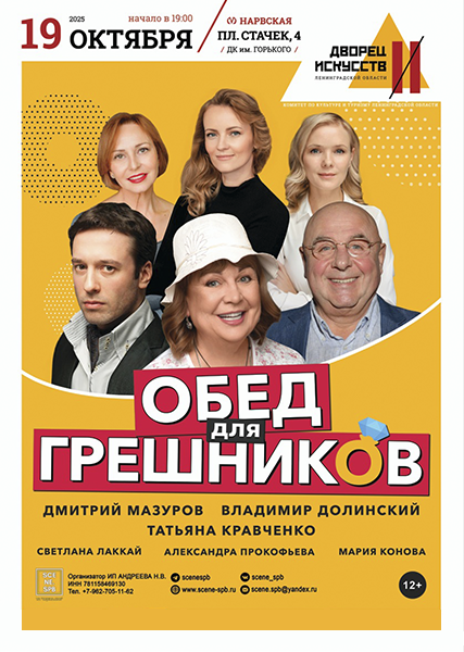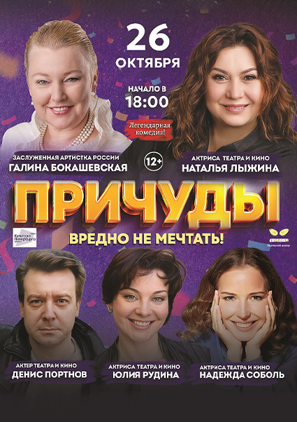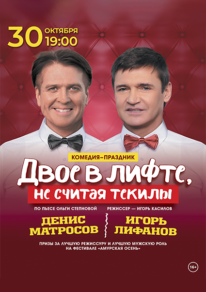 Продолжительность: 2 часа с антрактом Комедия-праздник по пьесе Ольги Степновой Режиссер - Игорь Касилов В ролях: • Денис Матросов («Кармелита», «Дом с лилиями», «Домохозяин», «Подари мне жизнь», «Кукушка», «Я больше не боюсь», «Авария», «Роковое наследство», «Две судьбы», «Мусорщик» и др.) • Игорь Лифанов («Брат», «Бандитский Петербург», «Убойная сила», «Дикий», «Диверсант», «Ленинград», «Спецназ», «Следствие любви» и...