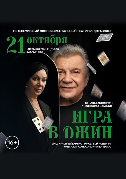 Продолжительность: 2 часа с антрактом Пьеса американского автора Д. Кобурна Лирическая комедия о жажде жизни и несбывшихся мечтах, о далеком прошлом и призрачном будущем, о надежде и любви сквозь смех и слезы Режиссер - Наталия Тарыничева Актеры: • заслуженный артист РФ Сергей Кошонин • Ольга Кирсанова-Миропольская Два азартных игрока вступают в схватку. Их фанатичная любовь...
