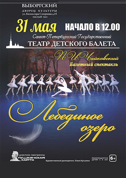 12:00 Балетный спектакль «Лебединое озеро» ДК «Выборгский» 31 мая 12:00 Балетный спектакль «Лебединое озеро» ДК «Выборгский»